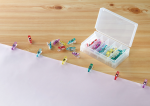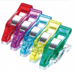Use Mini Wonder Clips for precision clipping! The small size works well with miniature patchwork, doll clothes, and all work that requires holding pieces together in tight sections. Clips are 1 1/16in long and 3/16in wide with a 1/8in nose.
